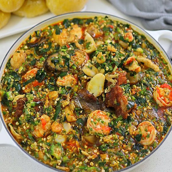 Ila Asepo, also known as Okro Soup, is made with fresh okra, peppers, palm oil, and assorted meats or seafood. It has a deliciously smooth texture and a rich, savoury taste that makes it a favourite across Nigerian homes.